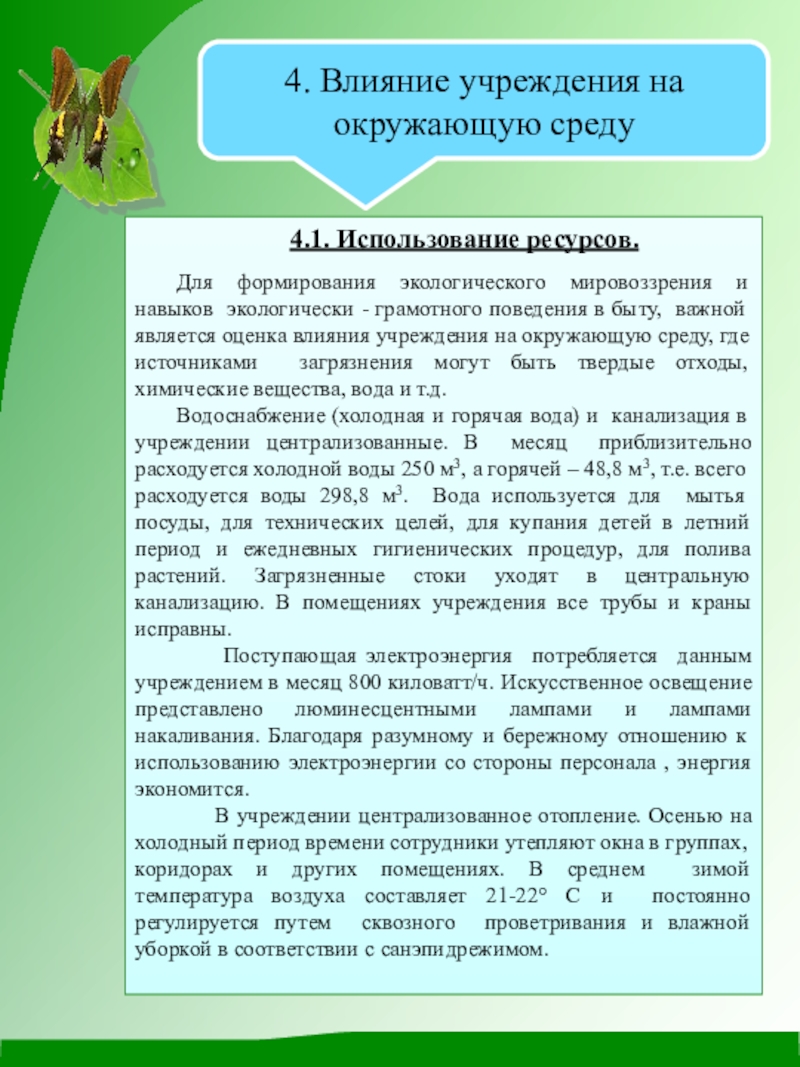 4. Влияние учреждения на окружающую среду
