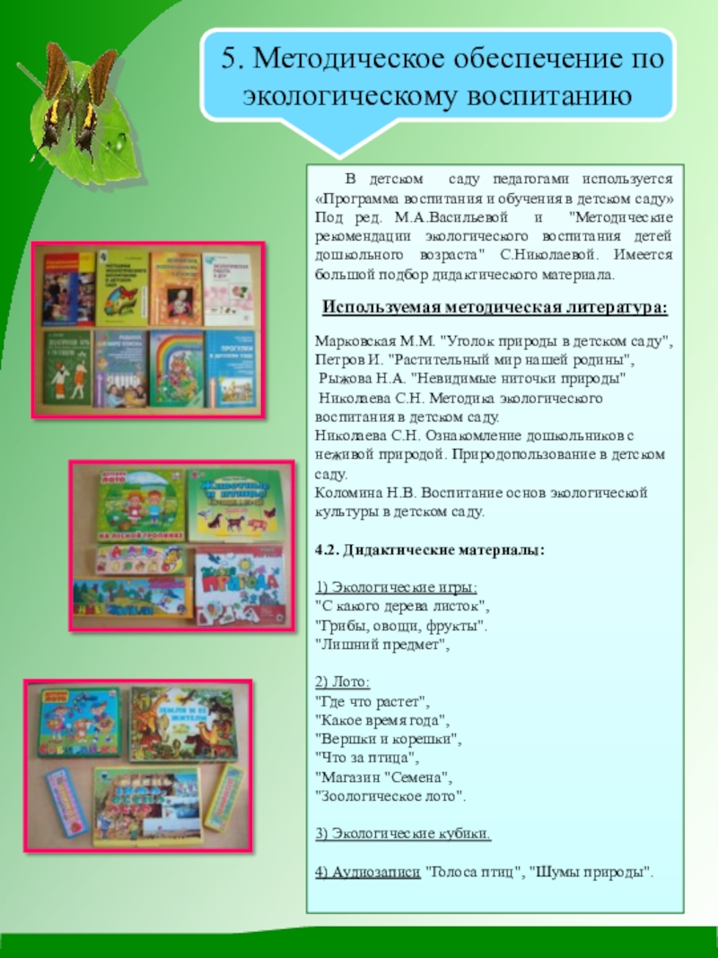 5. Методическое обеспечение по экологическому воспитанию