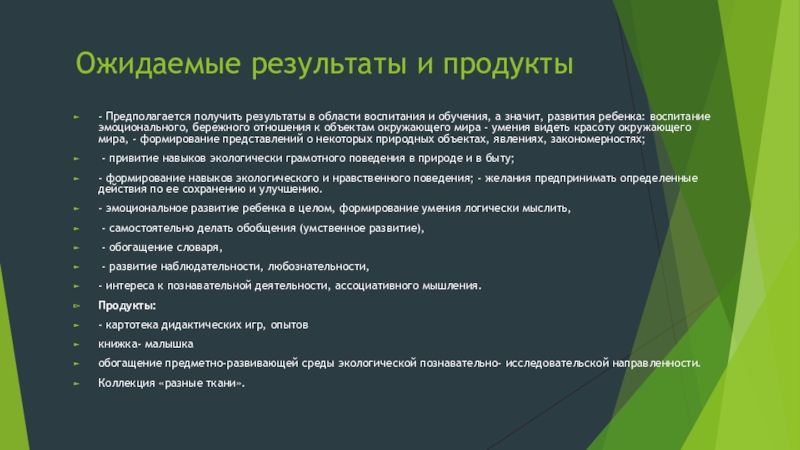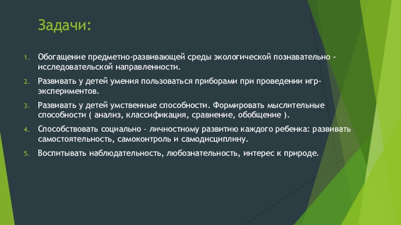 обогащение предметно-развивающей среды экологической познавательно- исследовательской направленности.