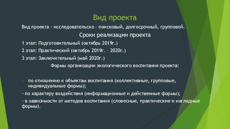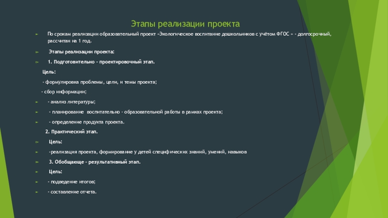 По срокам реализации образовательный проект «Экологическое воспитание дошкольников с