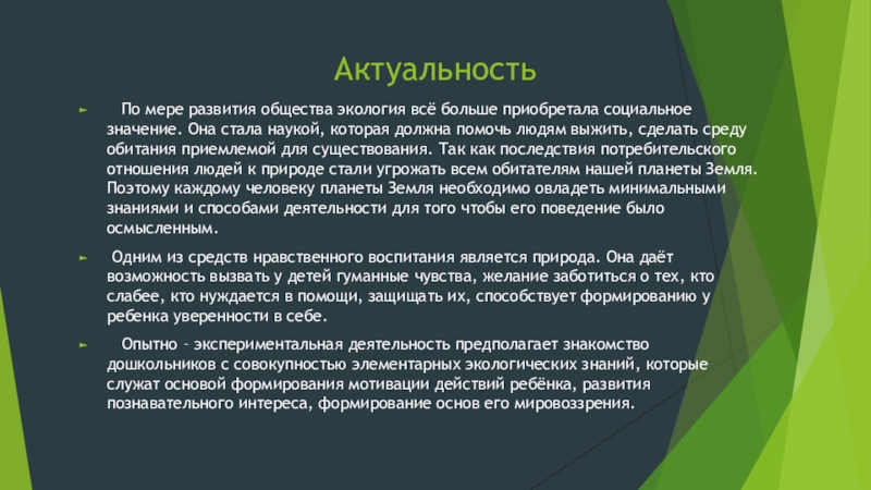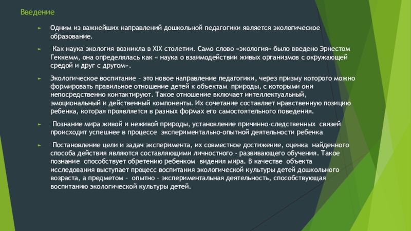 Одним из важнейших направлений дошкольной педагогики является экологическое образование.