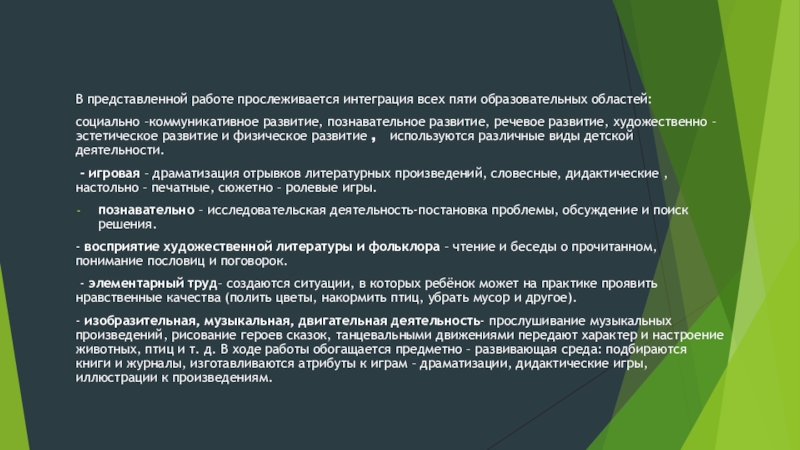 В представленной работе прослеживается интеграция всех пяти образовательных областей: