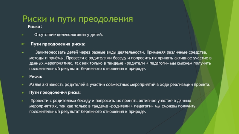 Малая активность родителей в участии совместных мероприятий в ходе реализации проекта.