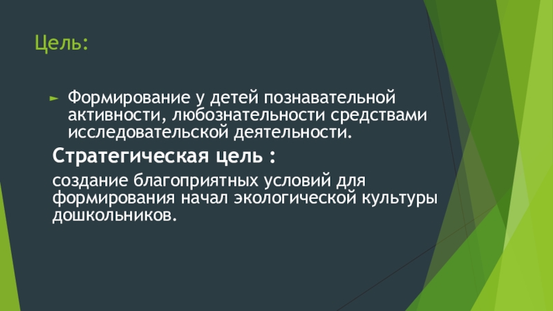 создание благоприятных условий для формирования начал экологической культуры дошкольников.