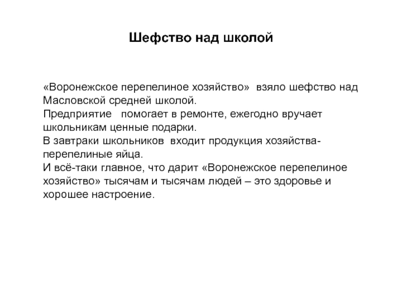 «Воронежское перепелиное хозяйство» взяло шефство над Масловской средней школой.