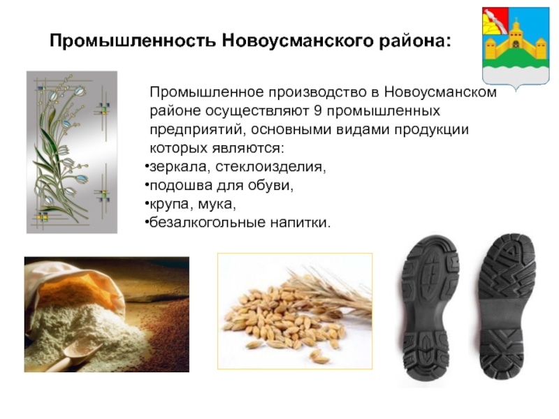 Слайд 3Промышленное производство в Новоусманском районе осуществляют 9 промышленных предприятий, основными видами