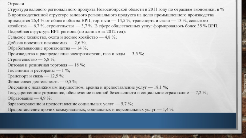 Структура валового регионального продукта Новосибирской области в 2011 году по отраслям