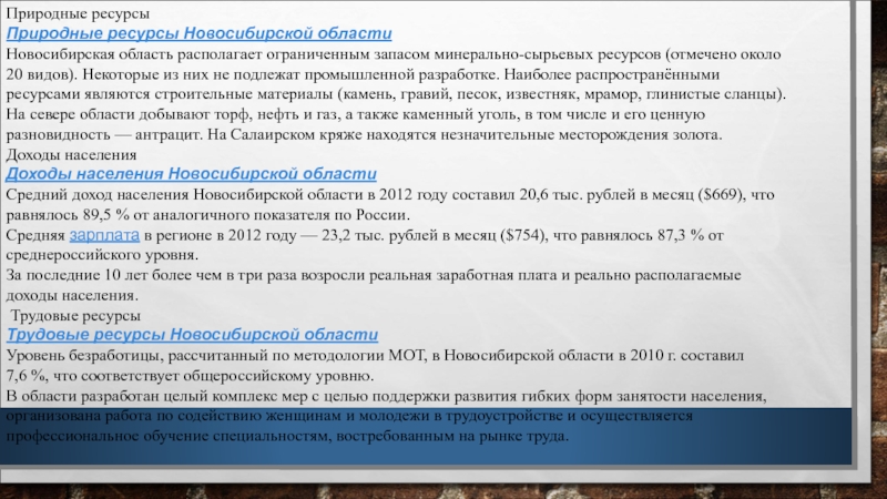 Новосибирская область располагает ограниченным запасом минерально-сырьевых ресурсов