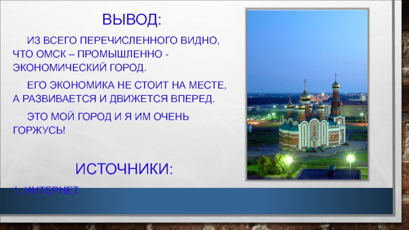 ОМСК – ПРОМЫШЛЕННО - ЭКОНОМИЧЕСКИЙ ГОРОД.