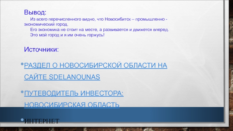 ЗАДАЧИ: УЗНАТЬ КАК РАЗВИТА ЭКОНОМИКА И ПРОМЫШЛЕННОСТЬ НОВОСИБИРСКОЙ ОБЛАСТИ.