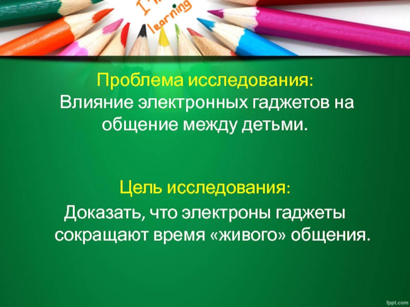 Проблема исследования:  Влияние электронных гаджетов на общение между детьми. Цель исследования:Доказать, что электроны гаджеты сокращают время