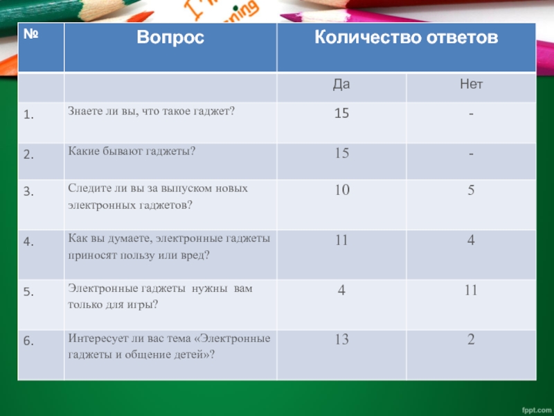 выяснить путём анкетирования, какие электронные гаджеты более популярны среди одноклассников, сколько времени они тратят на общение с ними;