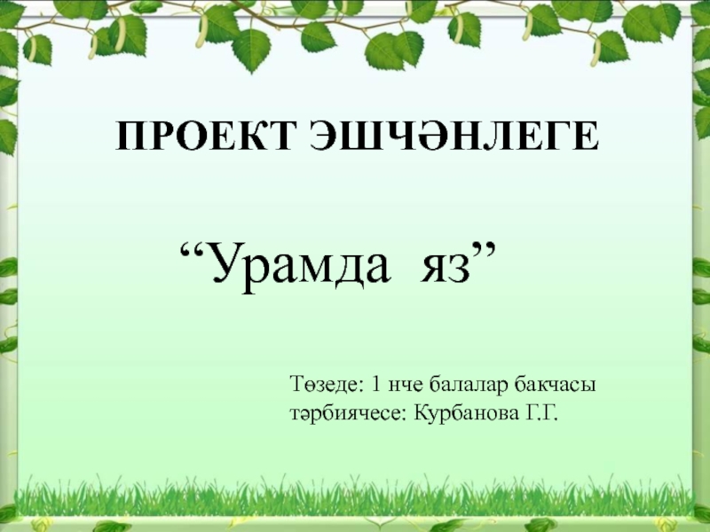 Презентация, доклад на тему ПРОЕКТ ЭШЧӘНЛЕГЕ “Урамда яз”
