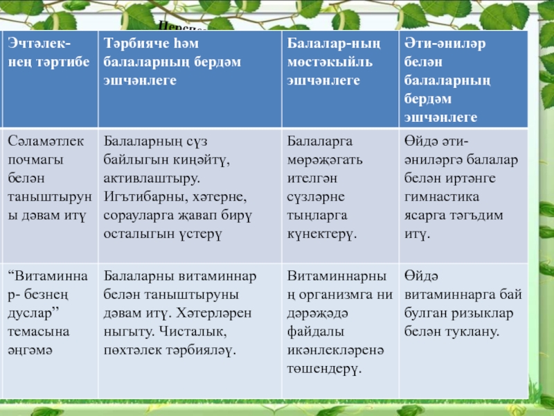 – сәламәт яшәү рәвешен пропагандалау йөзеннән ата-аналар өчен чаралар коплексы.