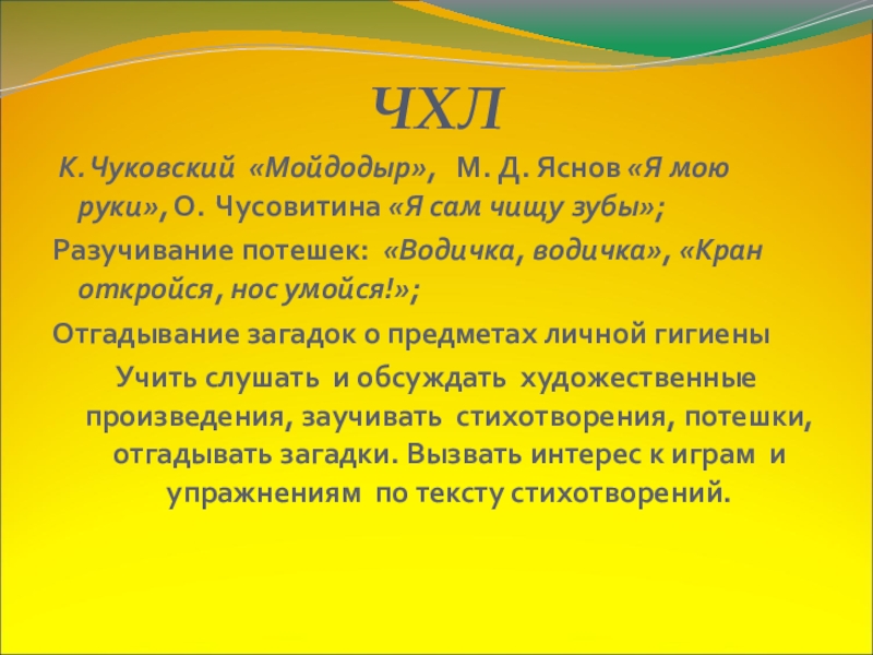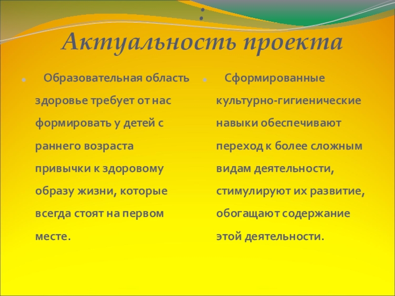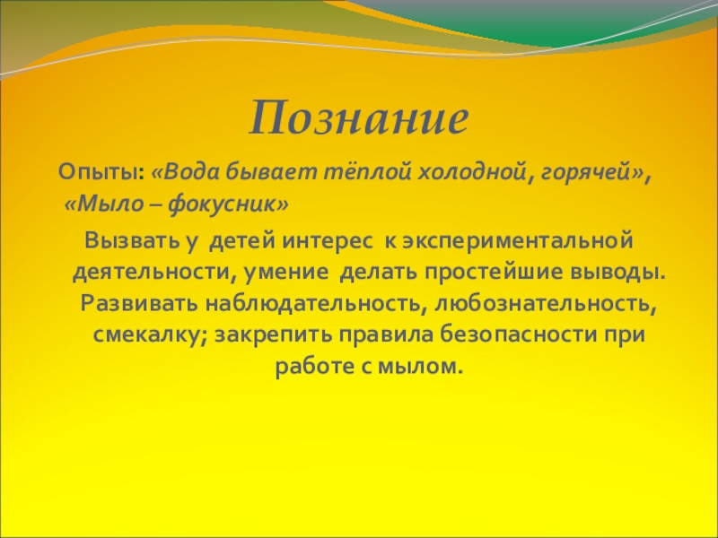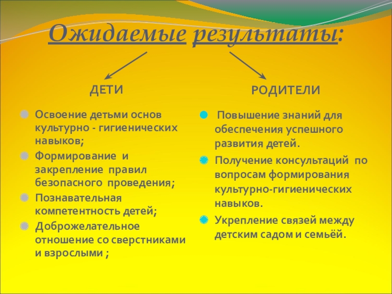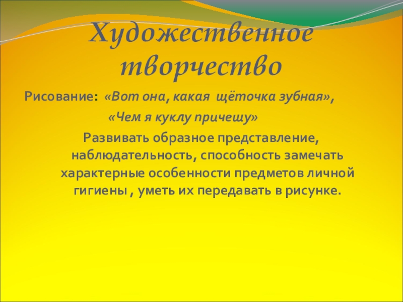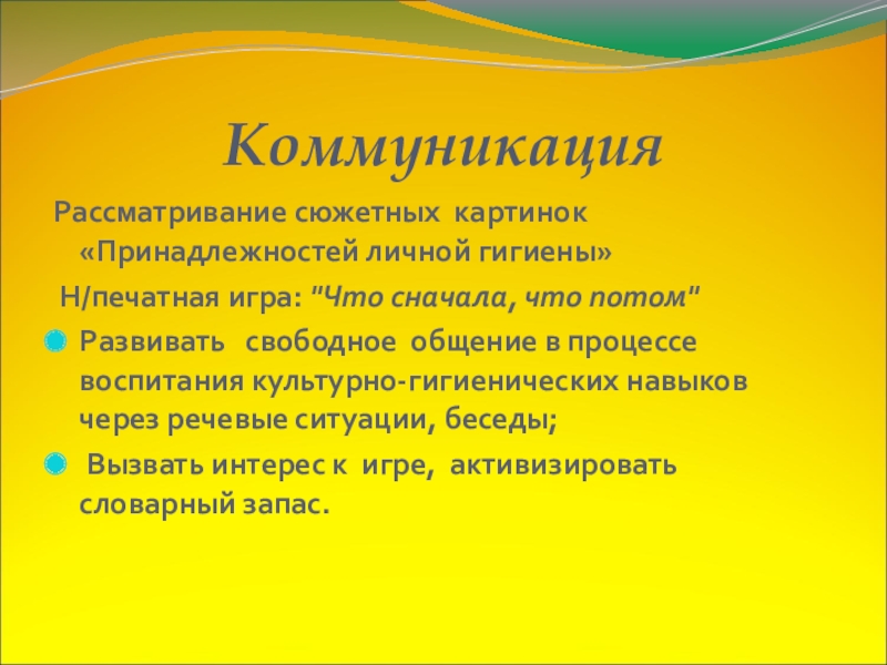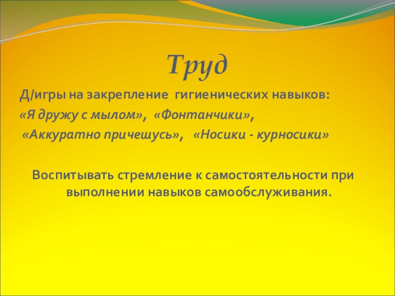 Сформированные культурно-гигиенические навыки обеспечивают переход к более сложным видам деятельности, стимулируют их развитие, обогащают содержание этой деятельности.