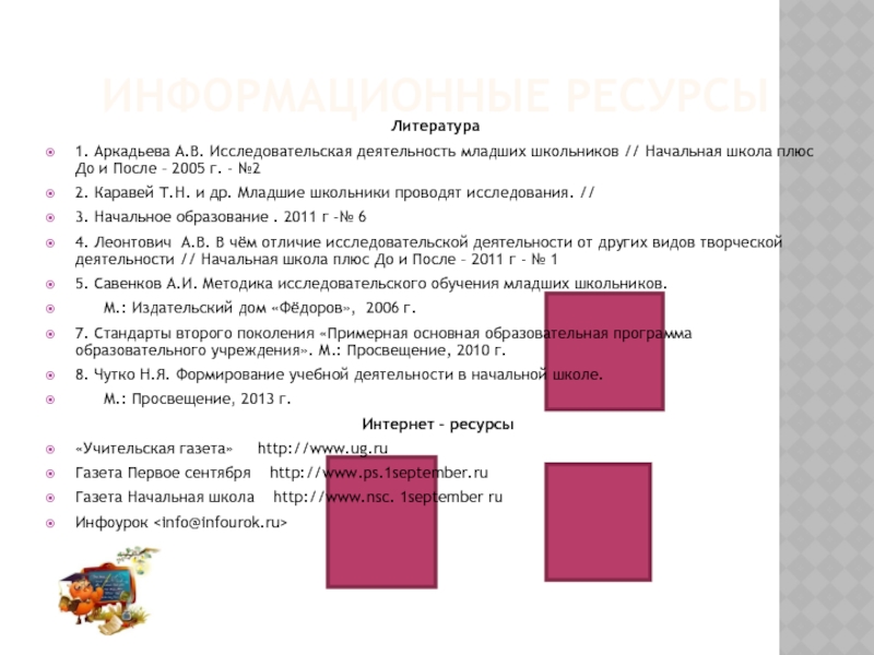 5. Савенков А.И. Методика исследовательского обучения младших школьников.