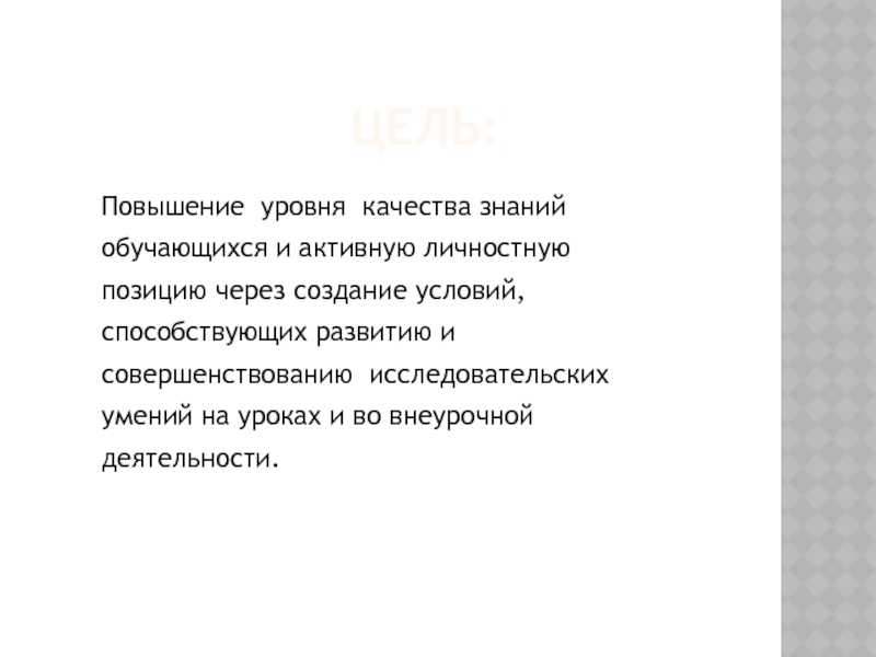 Повышение уровня качества знаний обучающихся и активную личностную позицию через создание