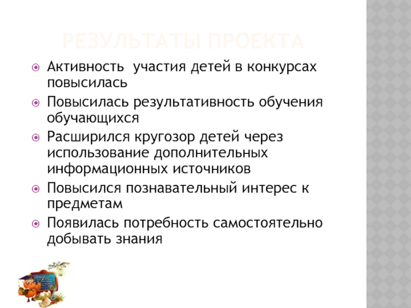 Слайд 23РЕЗУЛЬТАТЫ ПРОЕКТА