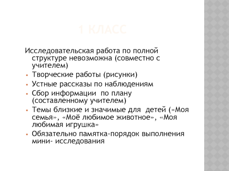 Исследовательская работа по полной структуре невозможна (совместно с учителем)