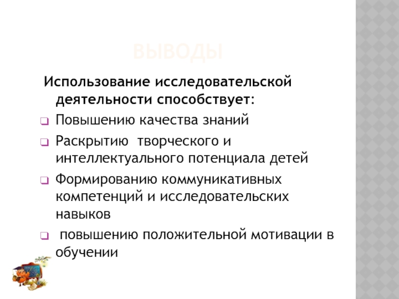 Использование исследовательской деятельности способствует: