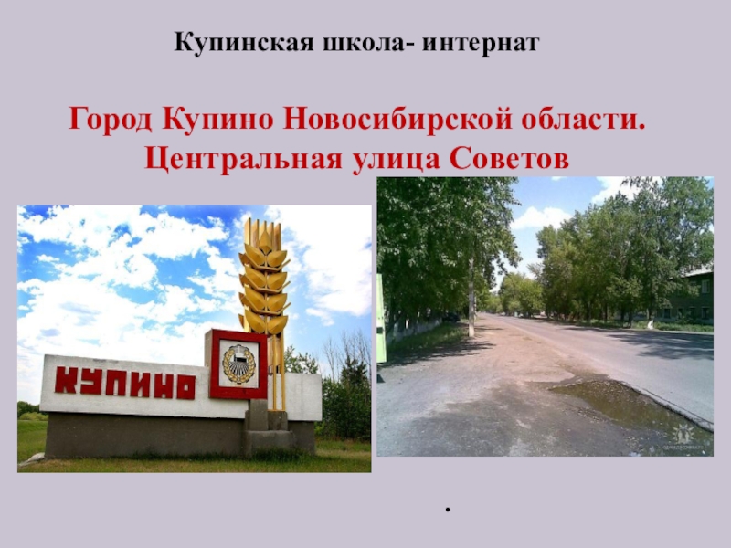 Слайд 2Купинская школа- интернат Город Купино Новосибирской области. Центральная улица Советов