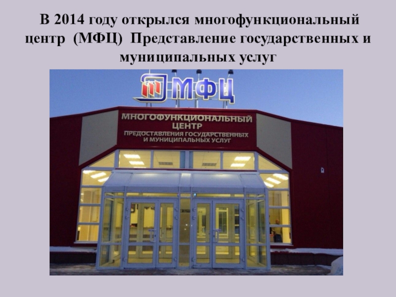 Слайд 18 В 2014 году открылся многофункциональный центр (МФЦ) Представление государственных и