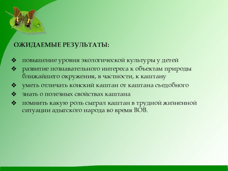 к объектам природы ближайшего окружения, в частности, к каштану