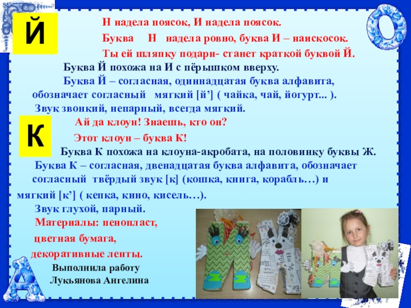 Буква Л– согласная, тринадцатая буква алфавита, обозначает согласный твёрдый звук [л] ( ложка, лодка, лопата, стол…) и мягкий [л’] (лев, лист, лётчик, соль…)