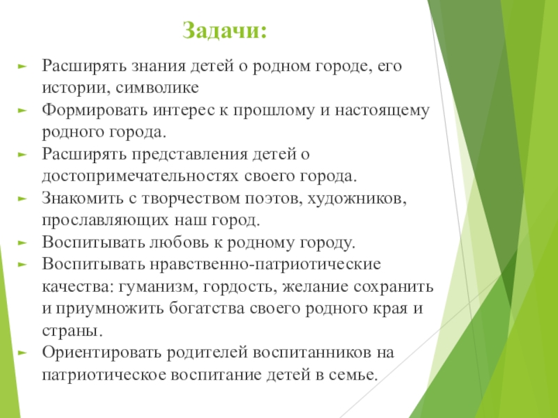 Воспитывать любовь к родному городу.