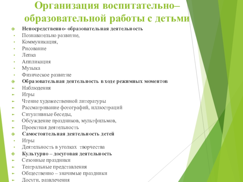 Слайд 11Организация воспитательно– образовательной работы с детьми