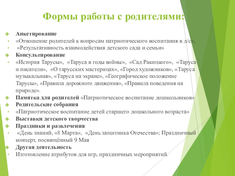 Слайд 12Формы работы с родителями: