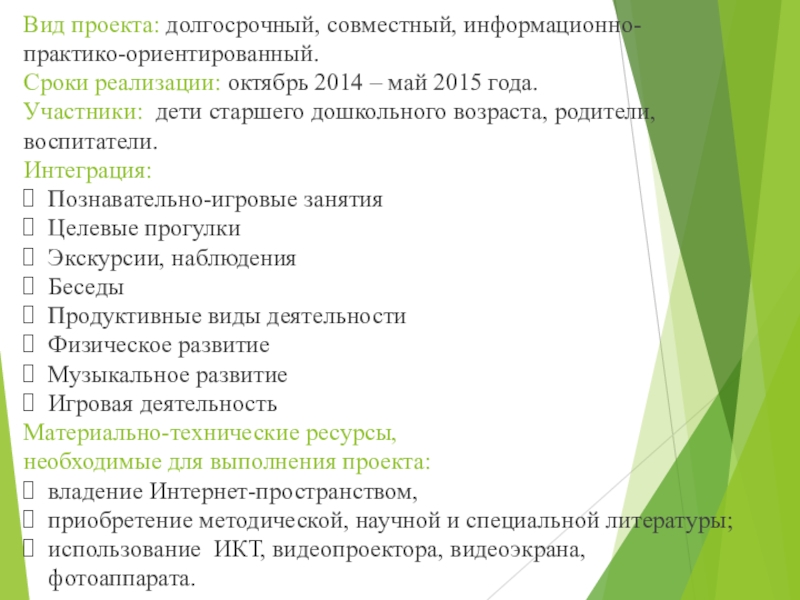 Слайд 7Вид проекта: долгосрочный, совместный, информационно-практико-ориентированный.