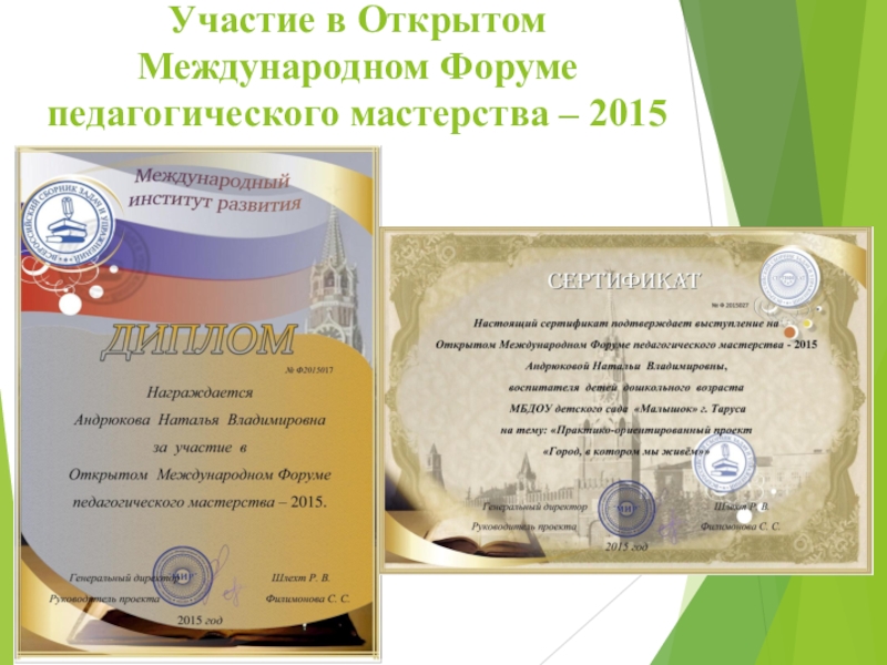 Слайд 25Участие в Открытом Международном Форуме педагогического мастерства – 2015