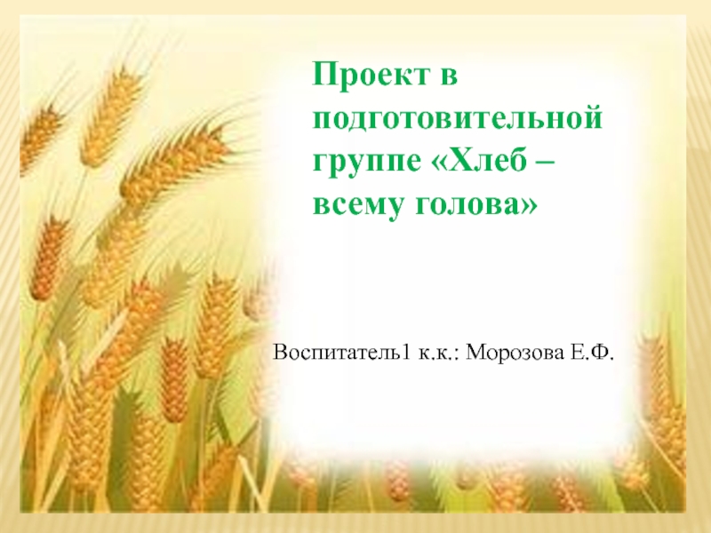 Слайд 1Проект в подготовительной группе «Хлеб – всему голова»