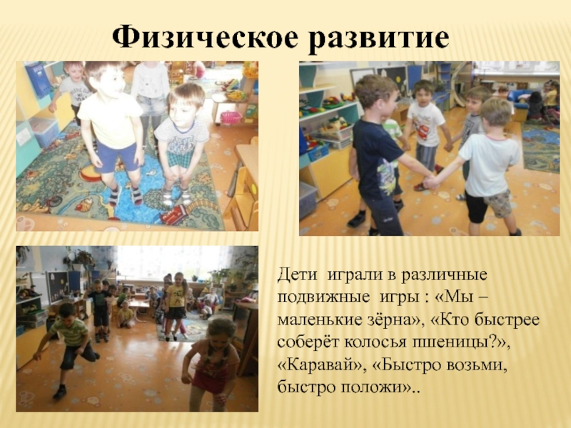 Слайд 23Дети играли в различные подвижные игры : «Мы – маленькие зёрна»,