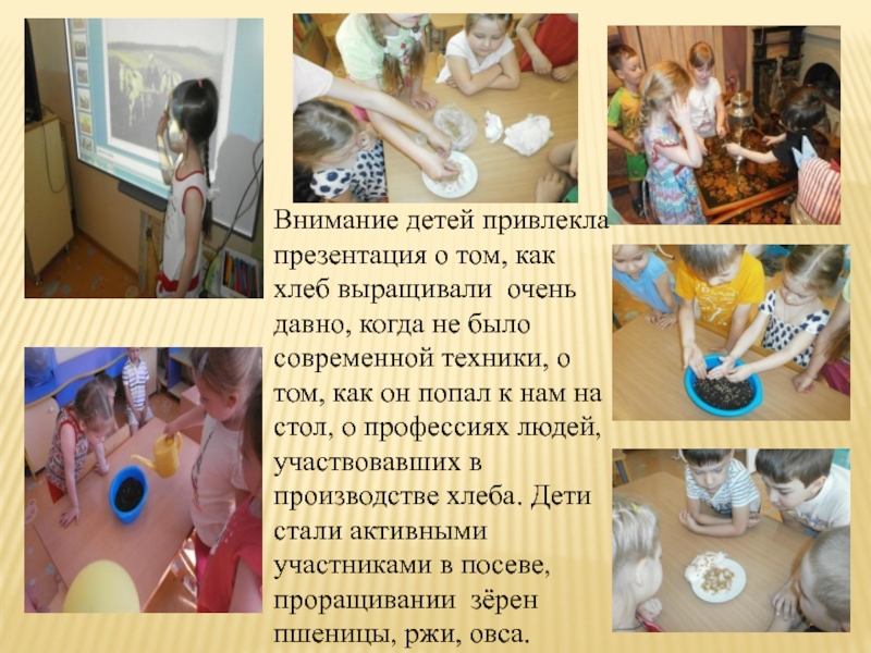 Слайд 16Внимание детей привлекла презентация о том, как хлеб выращивали очень давно,