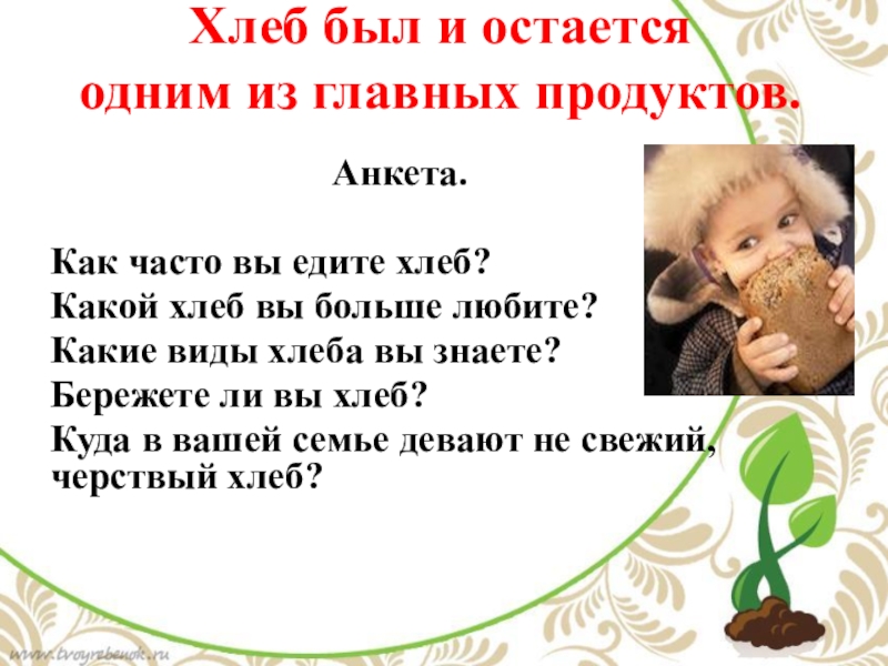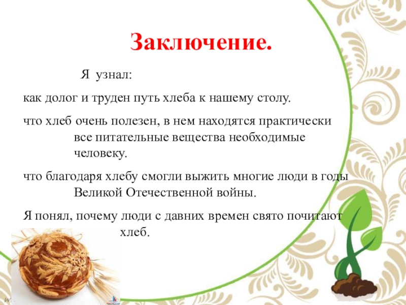 «Хлеб- всему голова.»
