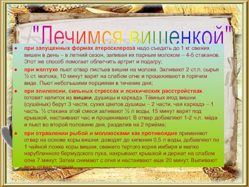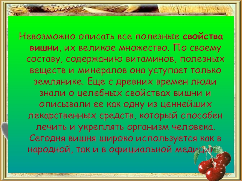 "Ценные свойства вишни"