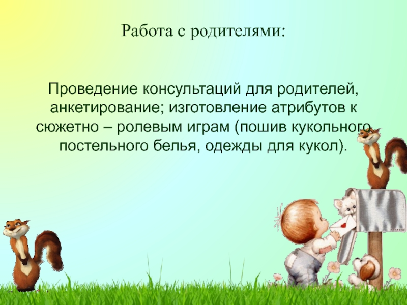 --Содействовать желанию детей самостоятельно подбирать игрушки и атрибуты для игры, использовать предметы – заместители.