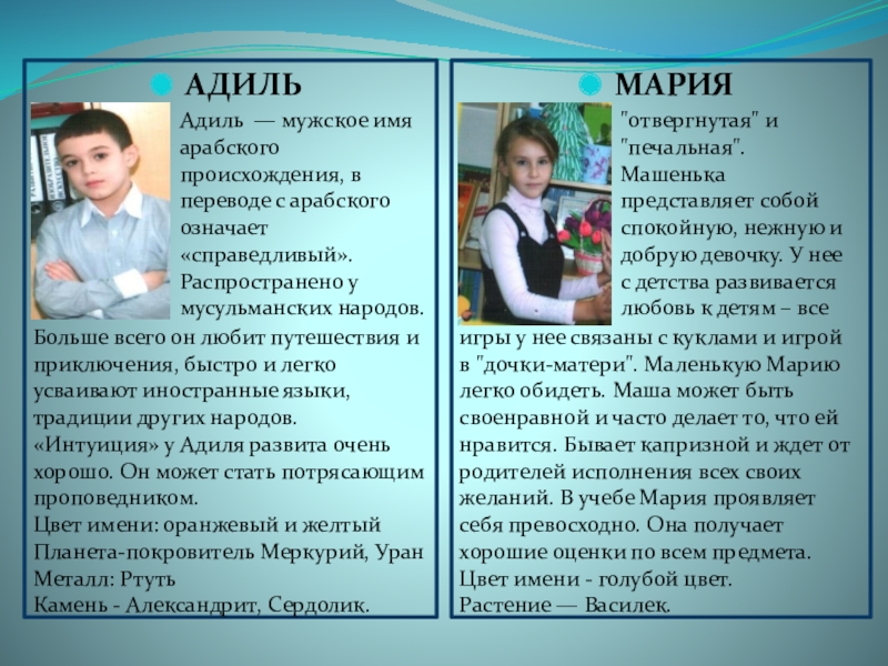 Больше всего он любит путешествия и приключения, быстро и легко усваивают иностранные языки, традиции других народов. «Интуиция» у Адиля развита очень хорошо. Он может стать потрясающим проповедником.