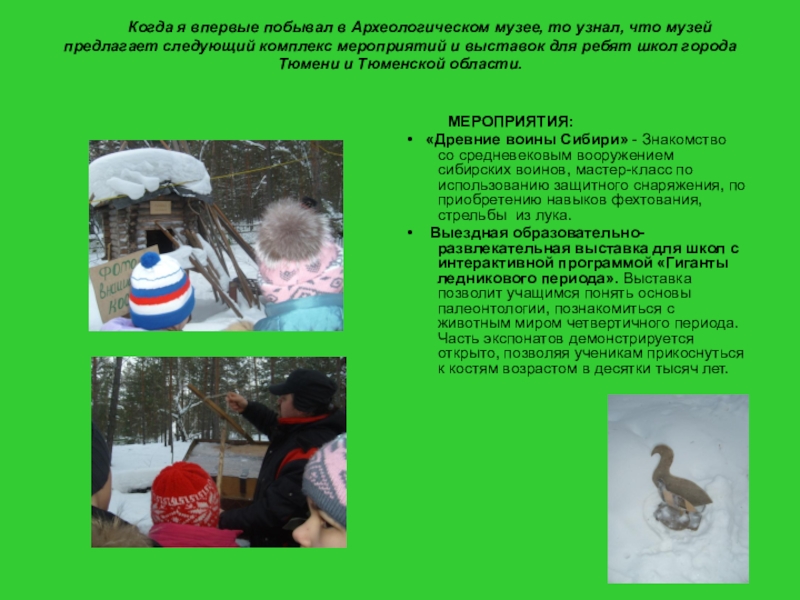 предлагает следующий комплекс мероприятий и выставок для ребят школ города Тюмени и Тюменской области.