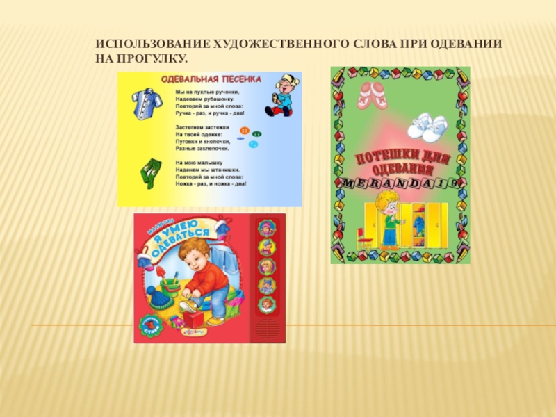 Слайд 15Использование художественного слова при одевании на прогулку.