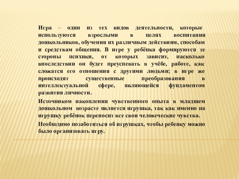 Слайд 9Игра – один из тех видов деятельности, которые используются взрослыми в