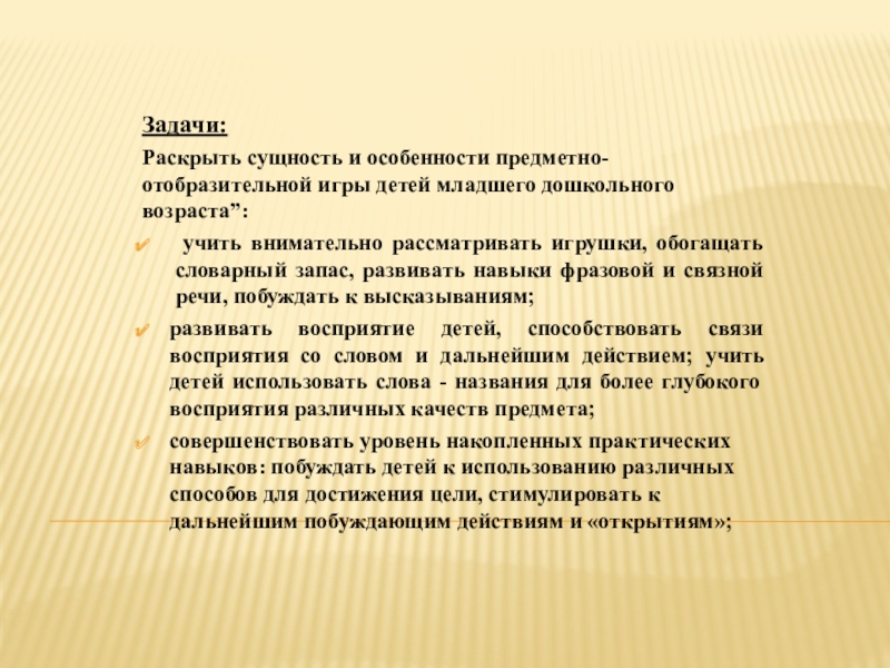 Раскрыть сущность и особенности предметно-отобразительной игры детей младшего дошкольного возраста”: