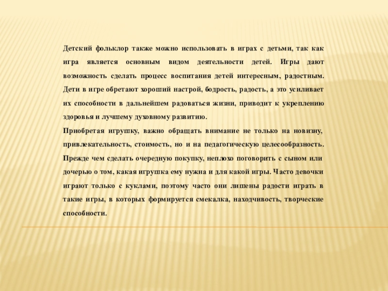 Слайд 12Детский фольклор также можно использовать в играх с детьми, так как