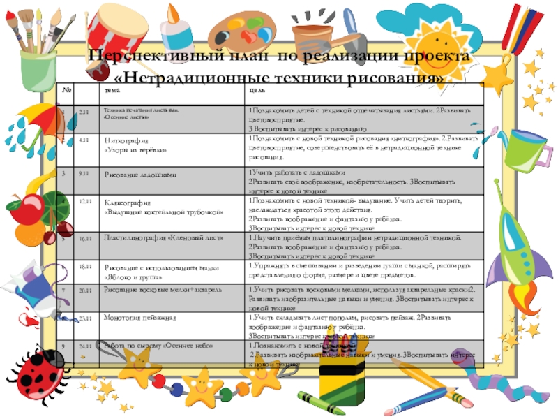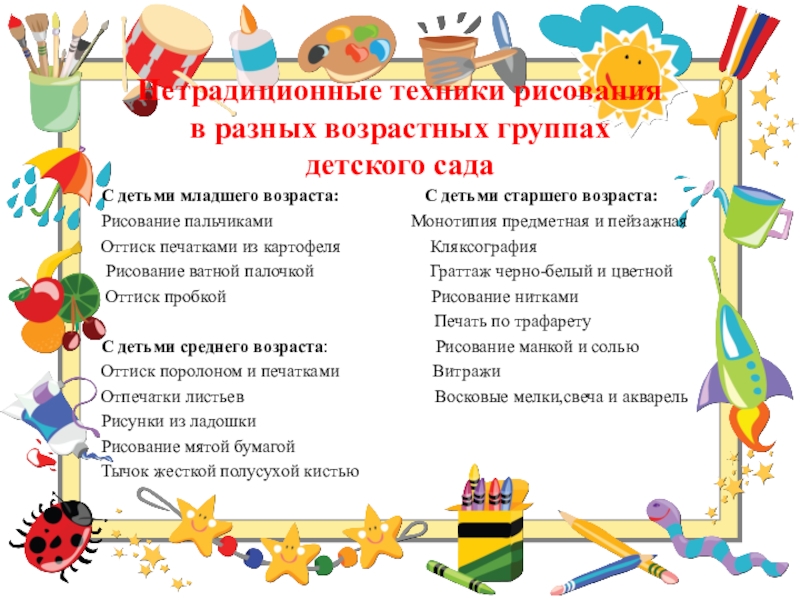 возраста с помощью нетрадиционных техник и живописных материалов через систему занятий.