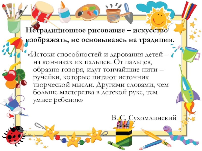 Слайд 2Нетрадиционное рисование – искусство изображать, не основываясь на традиции.