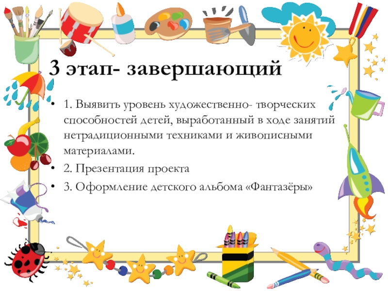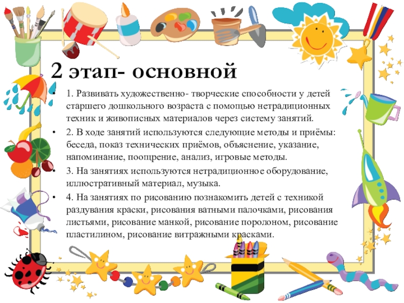2. Выявление и развитие творческих способностей у детей старшей группы путём проведения занимательных занятий рисования красками.