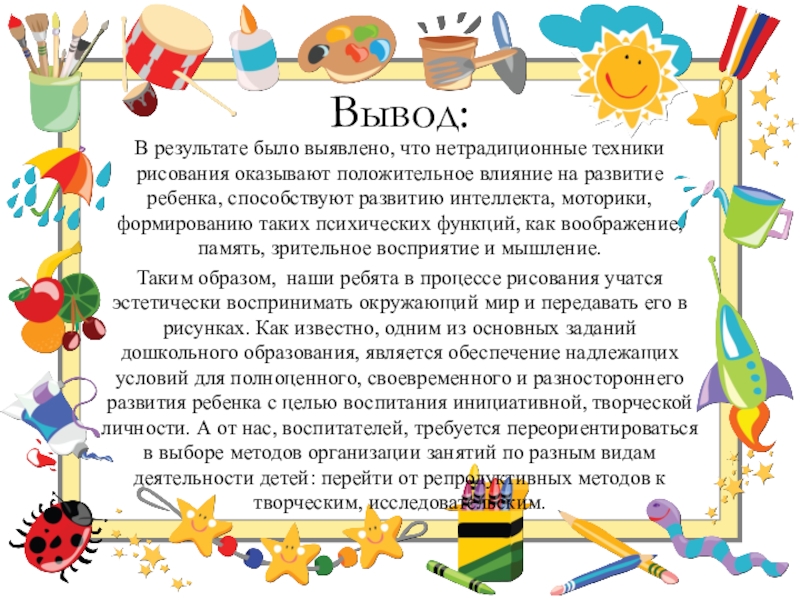 В результате было выявлено, что нетрадиционные техники рисования оказывают положительное влияние