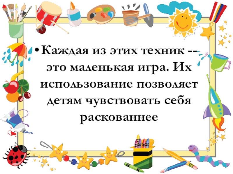Слайд 3Каждая из этих техник -- это маленькая игра. Их использование позволяет